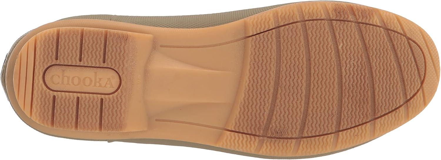 Step confidently into wet weather with the Chooka Women's Classic Tie Waterproof Ankle Bootie. Made from all-natural, high-quality rubber, these booties offer full waterproof protection with a stylish matte finish. The ankle-height design and bow tie detail with silver metal rivets add a chic flair to these functional rain boots, making them perfect for both rainy days and casual outings. Designed for comfort and stability, these boots feature a molded footbed for cushioned support and a moisture-absorbent poly lining to keep your feet dry. The self-cleaning tread on the rubber outsole offers excellent grip on wet and uneven surfaces, allowing you to move with confidence. Easy to slip on and off, thanks to the 11.5-inch shaft circumference and elastic side gore, these boots are a practical yet fashionable choice for any season. Available in versatile colors—Cognac, Black, Moss, and Sand—these Chooka booties are a must-have for anyone who values both style and function.