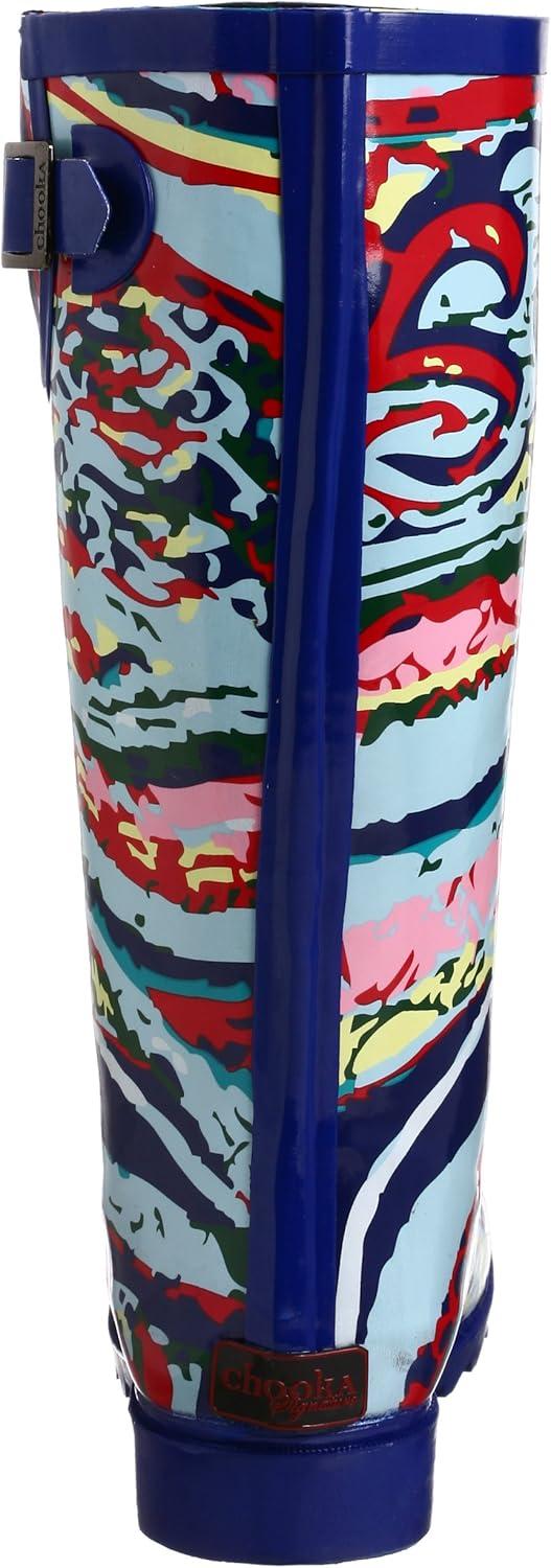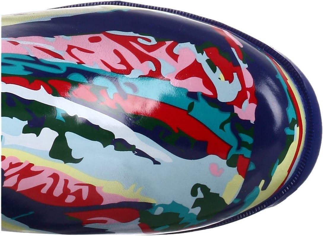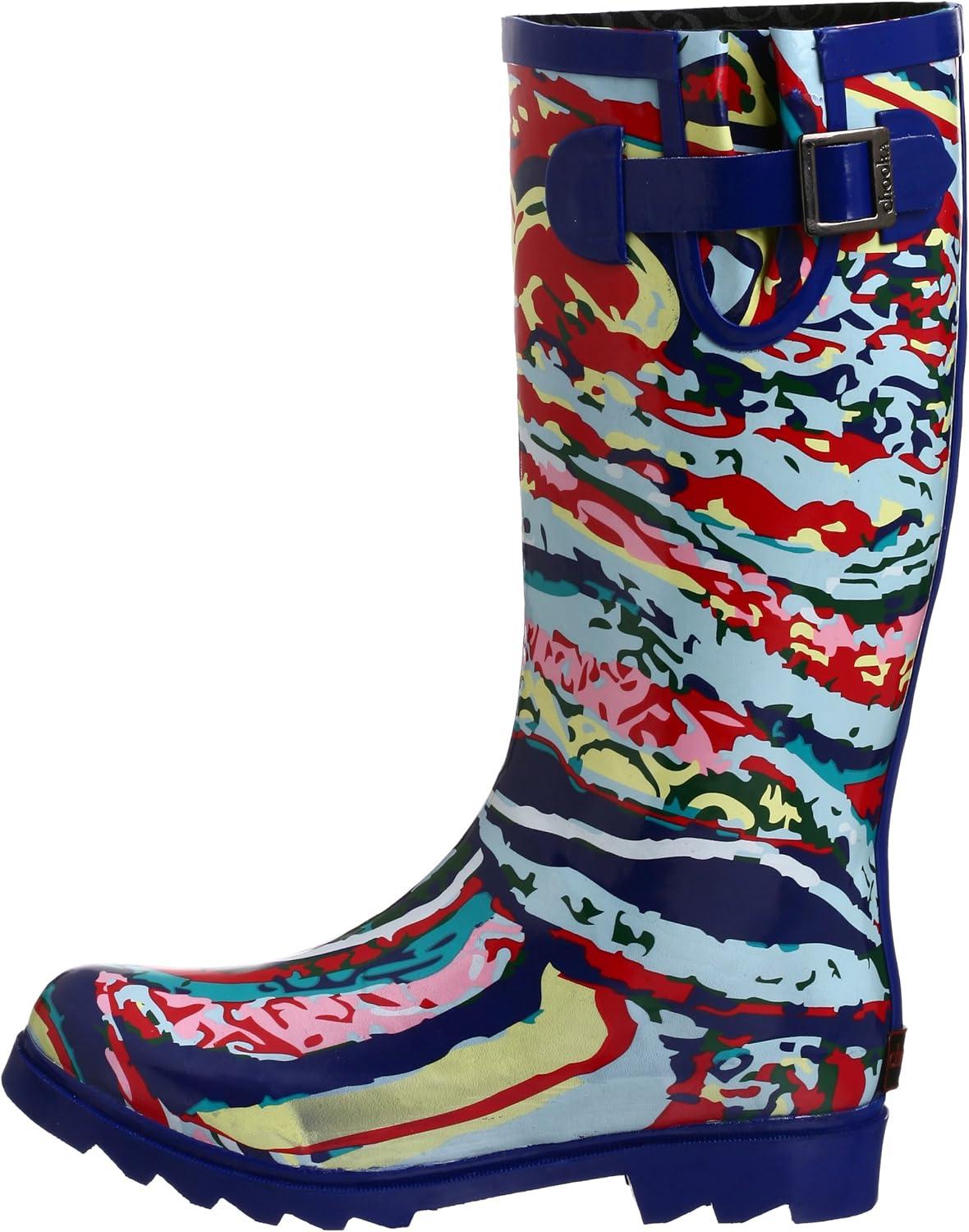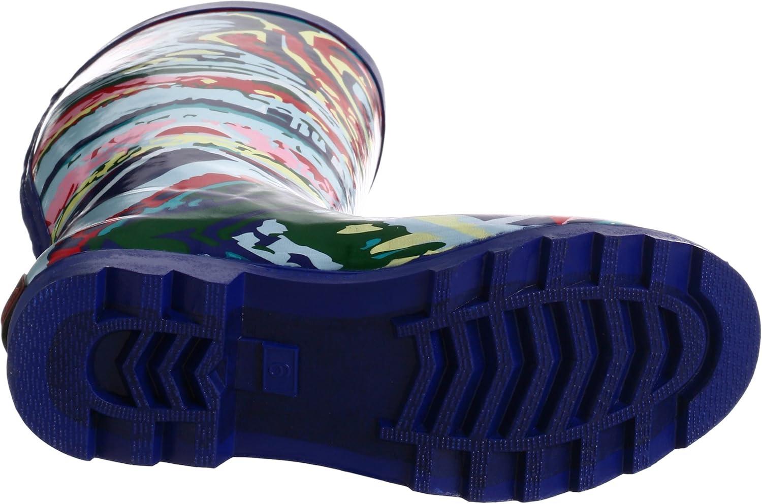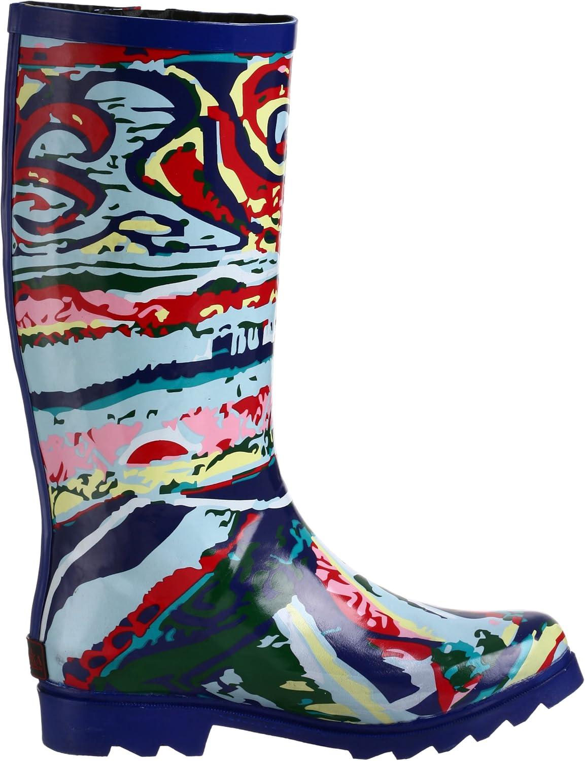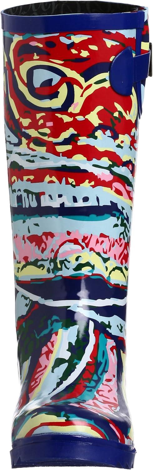 When you add a splash of color to puddle-splashing, the end result is nothing but fun, fun, fun! This rainboot from Chooka has a vibrant, all-over print on its fully waterproof rubber upper, a grooved rubber outsole for traction on wet and dry surfaces, and a moisture-absorbing fabric lining that will keep your tootsies and footsies temperate and dry.