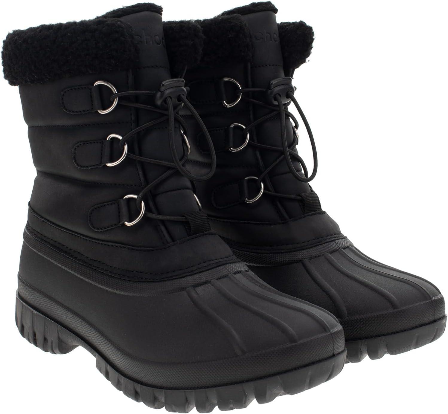 Chooka womens Warm Insulated Plush Lined Waterproof Mid Calf Winter Snow Boots(Black)
