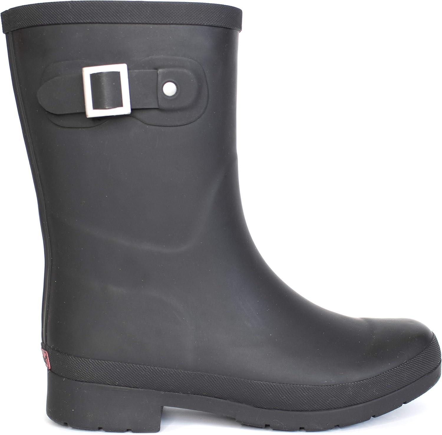 Chooka Women’s Waterproof Solid Mid-Height Rain Boot – Durable Rubber, Memory Foam Insole, Non-Slip Outsole, All-Weather Comfort(Delridge Black)